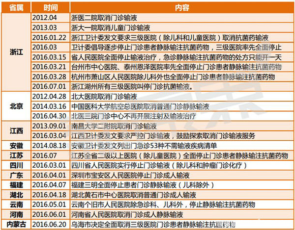 各省禁止输液政策时间表