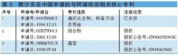 默沙东在华申请了多项与阿瑞吡坦相关的核心专利(详见表3)。其中,化合物专利94195008.5已于2014年12月失效,晶型专利98806703.X和组合物专利02827814.3将分别于2018年7月和2022年12月到期。