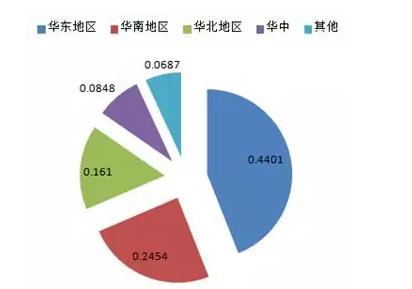 医疗器械企业大多集中在华东、华南和华北地区,44%的企业集中在华东地区。
