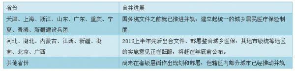 今年1月,《国务院关于整合城乡居民基本医疗保险制度的意见》提出,各省(区、市)要于2016年6月底前对整合城乡医保制度作出规划和部署,各统筹地区要于2016年12月底前出台具体实施方案。截止目前,至少已经有17个省市已经先后出台文件,部署城乡医保并轨,具体进程如下:
