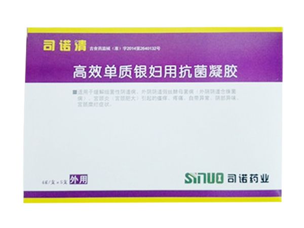 高效单质银妇用抗菌凝胶是由金属银利用前沿的超纳米技术和高温旋转分散技术而制取的粒径在10~50nm之间,分散均匀稳定、不易积聚的液态单质银抗菌液。抗菌活性高,可杀死650多种病原微生物,特别是对耐药病原菌大肠杆菌、金葡萄球菌、白色念珠菌、绿脓杆菌、化脓链球菌、厌氧菌等有全面的抗菌活性;对沙眼衣原体、引起性传播性疾病的淋球菌也有强大的杀菌作用。