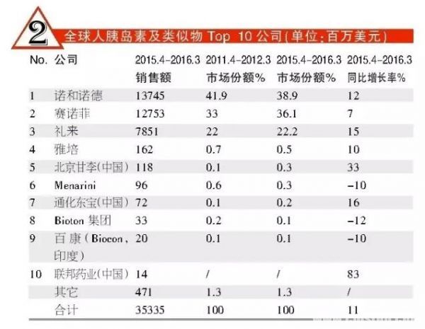 诺和诺德公司是全球最领先的人胰岛素及类似物公司,年销售额约为137亿美元,居全球领先人胰岛素及类似物销售公司榜首,见图表2。