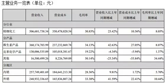 上半年兄弟科技实现营业收入50825.55万元,同比增长23.29%;实现利润总额10,457.86万元,同比增长172.65%;净利润6732.86万元,同比增长114.83%,业绩增长主要是得益于部分维生素产品的涨价。
