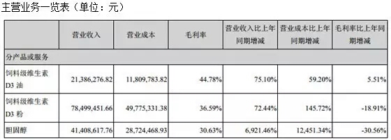 据花园生物半年度报告显示,其主要产品维生素D3的销售均价较上年同期有所下降,但产品销量增加较大,加上公司首发募投项目,羊毛脂综合利用项目已达产并顺利实现销售,导致公司营业收入、营业成本、净利润等指标出现较大幅度的增长。另一首发募投项目,年产100吨饲料级25-羟基维生素D3项目上半年由于进行客户验证,未有生产销售;目前该产品已通过客户验证,预计下半年可实现效益。