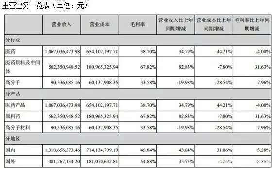 浙江医药的生命营养品实现销售收入113928.28万元,同比增长35.00%。医药制造类产品销售收入56508.01万元,同比增长49.02%,主要原因是重点制剂品种来立信系列、来可信、加立信、来益的销售平稳增长;医药原料药产品盐酸万古霉素、本芴醇、蒿甲醚等上半年销量也有所上升。