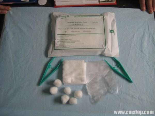 一次性无菌换药包由弯盘、垫单、镊子、纱布、棉球等组成。经密封包装及环氧乙烷灭菌仅供一次性使用。主要用于临床伤口、创面或手术切口换药用。从而克服了普通医疗器械重复使用灭菌不严造成的传染疾病的交叉感染又可减少医院用灭菌清毒的大量人力和物力使用方便有效的提高了医院的工作效率为医生和疾病患者提供了健康保障。
