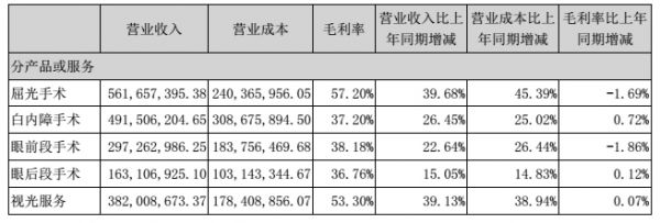 来自爱尔眼科2016年上半年财报也印证了眼科在医疗细分领域的快速发展,爱尔眼科2016年上半年财报显示,公司上半年利润贡献最大的两块业务来自两大事业部——屈光和视光,上半年营收均保持近四成增长,屈光手术实现收入5.6亿元,同比增长39.68%,视光服务实现收入3.8亿元,同期增长39.13%,使得公司营业收入继续保持了较快增长。