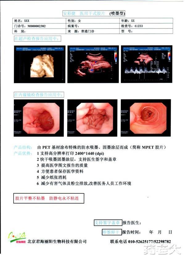 安彩捷高清彩色医用干式胶片,批准文号:京食药监械(准)字2014第1230063号,医药招商企业北京君海丽阳生物科技有限公司招商产品。安彩捷高清彩色医用干式胶片招商详情请进入>>
