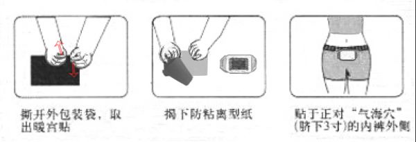 三、贴在正对“气海穴”(脐下3寸)的内裤外侧即可。