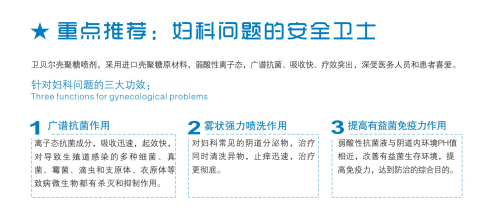 三大功效:1、广谱抗菌 2、雾状强力冲洗喷涂 3、提高有益菌免疫力改善腔道环境