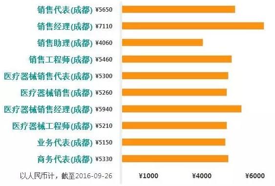 涉及成都的医疗器械各岗位平均工资