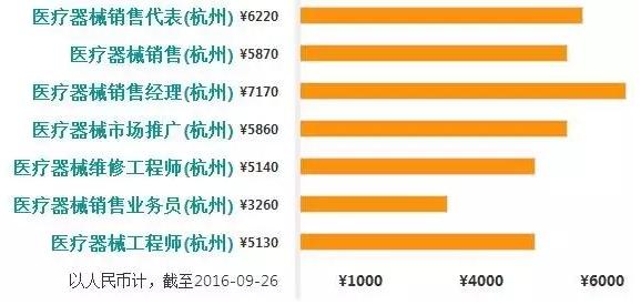 涉及杭州的医疗器械各岗位平均工资
