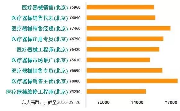 涉及北京的医疗器械各岗位平均工资