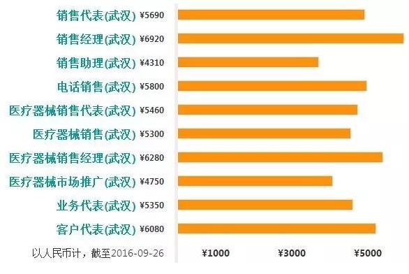 医疗器械销售代表薪酬排行榜