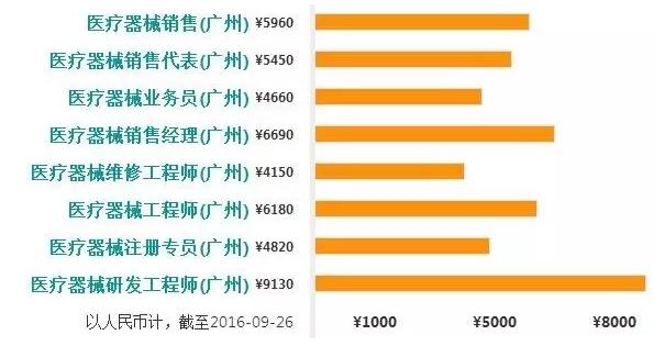 涉及广州的医疗器械各岗位平均工资