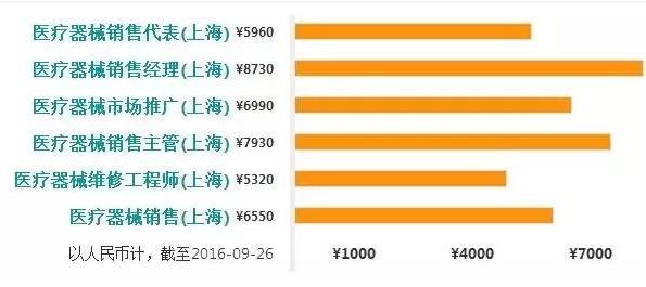 涉及上海的医疗器械各岗位平均工资