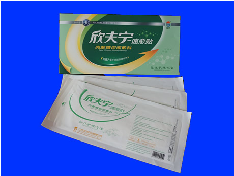 【产品主要结构】本产品由壳聚糖无纺布、吸水纤维、离型纸和涂胶无纺布组成,敷芯由壳聚糖无纺布、吸水纤维复合、切割等工艺制成。