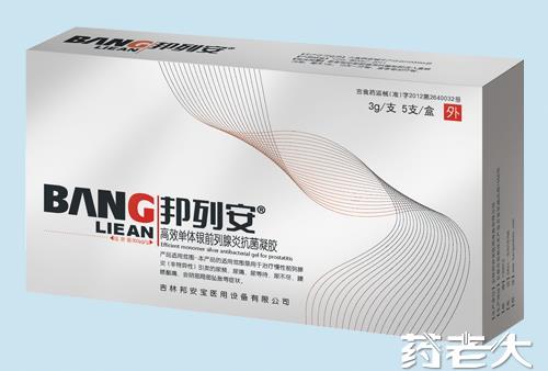 邦列安高效单体银前列腺炎抗菌凝胶,批准文号:吉食药监械(准)字2012第2640032号,医药招商企业武汉国药医药有限公司招商产品。本产品的适用范围是用于治疗慢性前列腺炎(非特异性)引发的尿频、尿痛、尿等待、尿不尽、腰膝酸痛、会阴部局部坠胀等症状。邦列安高效单体银前列腺炎抗菌凝胶招商详情请进入>>