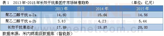 普通干扰素在中国医疗市场的销售额依然可观,从2013年的11.90亿元到2015年16.26亿元显示了价格低廉干扰素巨大的市场需求。可预见派格宾不会让如此可观的利益溜走。派格宾具有价格优势的同时,拥有进口药的疗效和安全性。之前由于价格因素选择普通干扰素的人群,在派格宾上市后,可能因为疗效和安全性的原因转而选择派格宾。