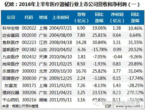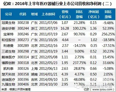 ④2016年上半年净利润同比涨幅中,理邦仪器和宝莱特均呈现增长状态,涨幅分别是270.32%和256.25%,两家公司均面向监护市场,说明今年国内的监护市场发展状况良好。