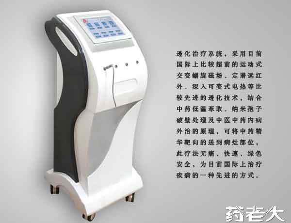 透化治疗系统是第三代给药方式,采用目前国际上比较超前的运动式交变螺旋磁场、定谱远红外、深入可变式电热等透化技术,结合中药低温萃取、纳米孢子破壁处理及中医中药内病外治的原理,可将中药精华靶向的送到病灶部位。此疗法无痛、快速、绿色安全,此过程中不会改变药物的结构和性质,为目前国际上治疗疾病的一种先进的康复理疗方式,真正实现了无痛、无创靶位精确治疗。