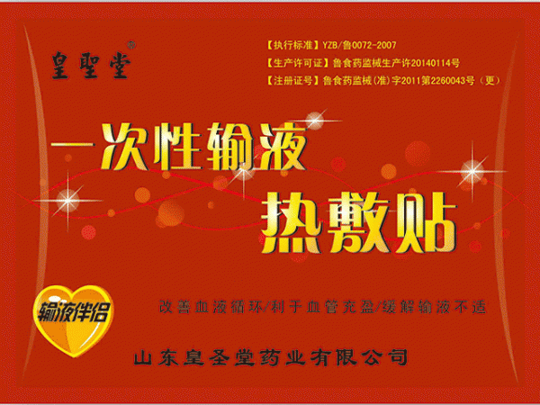 医用输液加温贴,批准文号:鲁食药监械生产许20140114号,医药招商企业山东皇圣堂药业有限公司(琼森)招商产品。产品适用于一次性加温液体或者营养液时使用,并可用于家庭保健热敷使用,严寒冬季家庭保暖使用。医用输液加温贴招商详情请进入>>