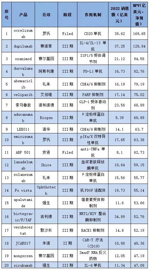 结合之前IMS发布的全球畅销药TOP20榜单和World Preview 2016,Outlook to 2022在研药品最具价值榜单来看看,未来哪些公司的哪些药品将会成为重磅炸弹药品的“候选人”。