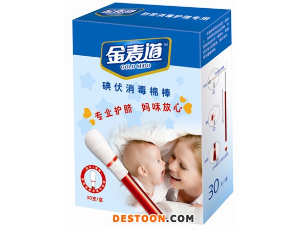 金麦道碘伏消毒棉棒专业用于脐带消毒护理,其优点如下:
