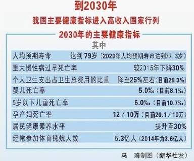 据新华社10月25日晚间消息,中共中央、国务院正式印发了《“健康中国2030”规划纲要》。《纲要》确定了我国今后15年推进“健康中国”建设的行动纲领,提出优化健康服务,完善健康保障,建设健康环境,发展健康产业,明确要建设健康信息化服务体系。