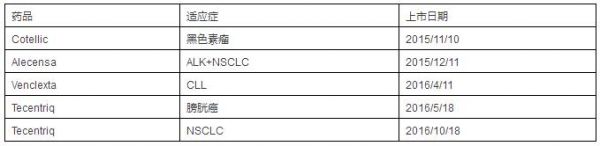 在过去的12个月,罗氏先后获批上市了黑色素瘤药物Cotellic (cobimetinib)、肺癌药物Alecensa (alectinib)、白血病药物Venclexta(venetoclax)、以及治疗膀胱癌和肺癌的PD-L1单抗Tecentriq (atezolizumab),另外,多发性硬化症新药Ocrevus (ocrelizumab) 也在等待监管机构的批准。