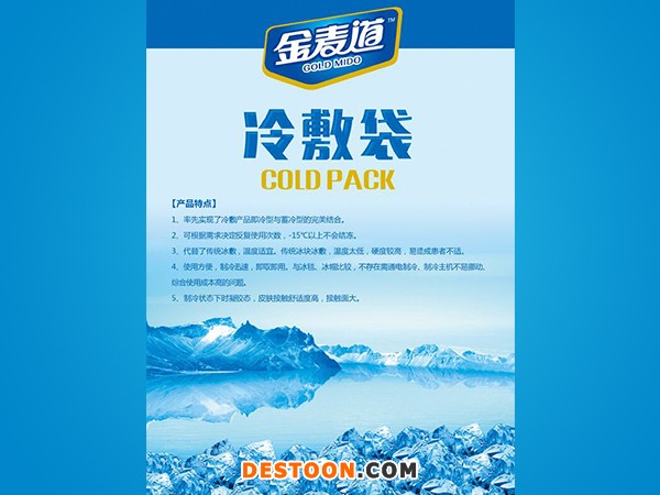 “金麦道”牌冷敷袋 由反应液、制冷剂、蓄冷材料和塑料软袋组成。具有良好的实用性,适用于物理降温、冷敷理疗,较传统降温产品更安全、更方便、更有效、更舒适,减轻了医务工作者的负担,已成为医疗卫生机构降温冷敷的首选产品。
