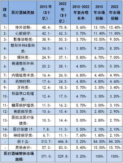 2015年全球医疗器械类别TOP15