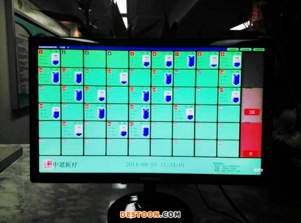 该系统在不改变原有输液方式的基础上,应用自主知识产权,首创了全新的输液管理模式。每个床位或输液位都配有一台独立的智能输液监控器(床边机),病人在输液的过程中床边机将处理后的输液状态信息通过无线装臵实时传送到护士服务台(中央站),护士在中央站就能看到每个输液位输液的进程状态及报警状态。通过预先设臵限定剩余量,系统会自动警报提示护士前去终止输液或更换药液。