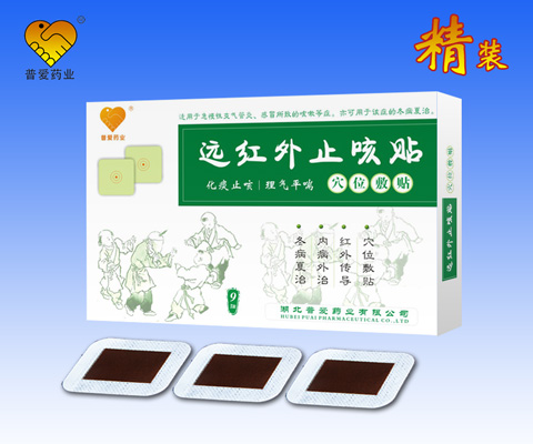 远红外止咳贴运用远红外缓释原理,达到透皮吸收,持续刺激穴位,以达到加速血液循环、清肺化痰、修复受损呼吸道粘膜的治疗效果,更促进人体内环境整体调节、提高机体免疫力。 远红外止咳贴穴位,透皮吸收,内病外治,适应人群广泛。远红外止咳贴以亲水性的大分子物质为基质,与皮肤有很好的生物相溶性,在远红外技术协同作用下,药物极易通过人体的皮肤,渗透入血液、经脉,从而平稳、持久地发挥功效。