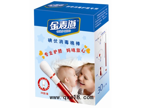 本品为充有聚维酮碘溶液的管状棉棒,其中聚维酮碘溶液的有效碘含量为0.45%-0.55%,金麦道碘伏消毒棉棒专业用于脐带消毒护理,其优点如下: