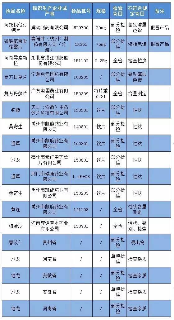 近日,河南、内蒙食药监局分别发布药品质量抽检结果通告。共计64批次药品抽检不合格。