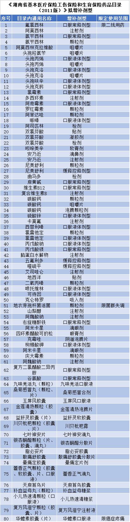 1、增补原目录未收录、且属于原新农合药品目录(包括《新农合基本药品目录(2010年版)》、国家基本药物、湖南省增补的基本药物)的药品和剂型;