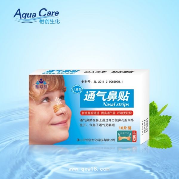 通气鼻贴,批准文号:粤食药监械生产许20081647号,医药招商企业佛山市怡创生化科技有限公司招商产品。适用于贴于鼻腔外部,通过弹力使鼻孔腔向外张开,令通气更畅顺。通气鼻贴招商详情请进入>>