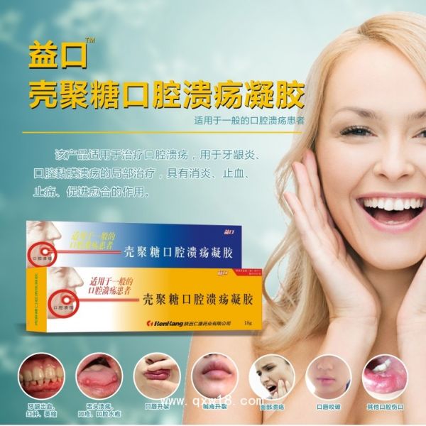 壳聚糖口腔溃疡凝胶适用于治疗口腔溃疡,用于牙龈炎、口腔黏膜溃疡的局部治疗,具有 消炎止血镇痛等功能,批准文号:陕食药监械(准)字2013第2640081号,医药招商企业陕西仁康药业有限公司临床招商部招商产品。壳聚糖口腔溃疡凝胶招商详情请进入>>