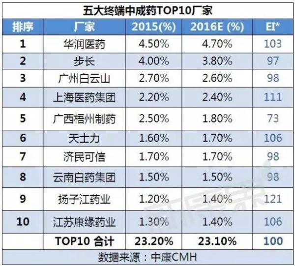 市场表现哪家强 综合五大终端市场,华润医药、步长制药、广州白云山及上海医药集团一直占据市场领先地位。其中,华润医药和广州白云山重点产品以零售市场表现较佳;步长及上海医药重点产品销售则主要由医院市场贡献。