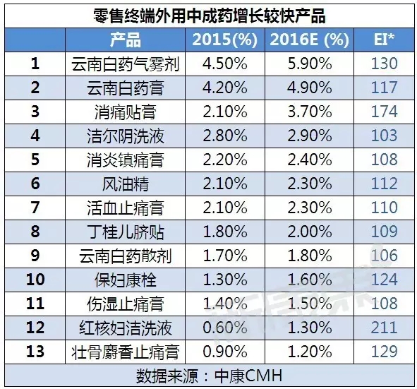 中成药产品众多,医院市场和零售市场产品结构各异,中成药产品表现需要区分渠道比较。