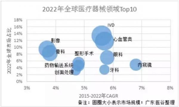 2022年,全球医械TOP10领域,各自销售额占比情况