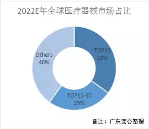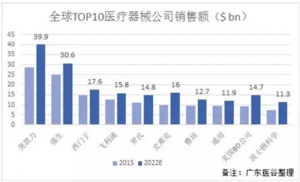 在2015年度,全球TOP10医疗器械公司贡献了1,380亿美元,市场份额占到37%。