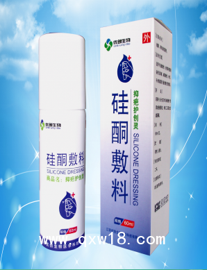 硅酮敷料产品性能:硅酮敷料采用硅酮、有机硅抗菌剂为主要原料制备而成。装在铝质罐内。基本参数:喷出率≥85%;PH值为4.0-7.0 适用范围:适用于浅度烧伤、创伤等创面的保护及抑制、减轻烧伤、外伤、手术等原因引起的增生性疤痕技术优势:本产品具有保护创面,抑制疤痕增生,减轻疤痕色素,软化疤痕,止痛止痒之功效。本产品安全可靠,适用方便,适宜患者自用。