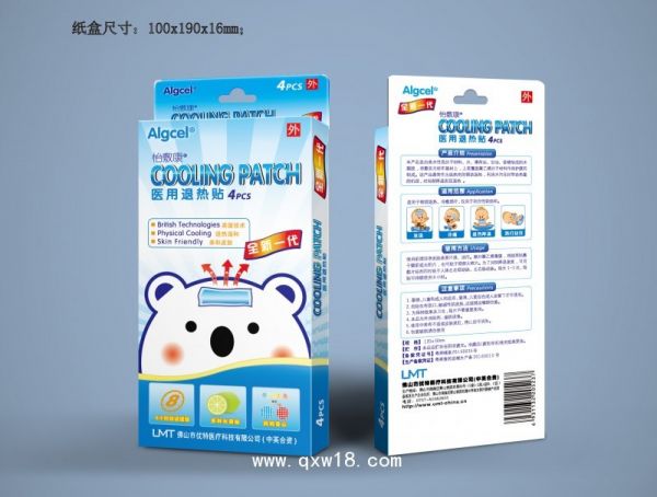 感温变色医用退热贴引进英国技术采用目前世界最先进的第三代巴布剂技术生产,基质均一性、半流质物体高精度涂布技术国际领先,根据人体工学设计的形状粘贴牢固,不易脱落。背衬采用日本进口优质无纺布,四面弹力,轻薄透气,使用者无不适感觉。