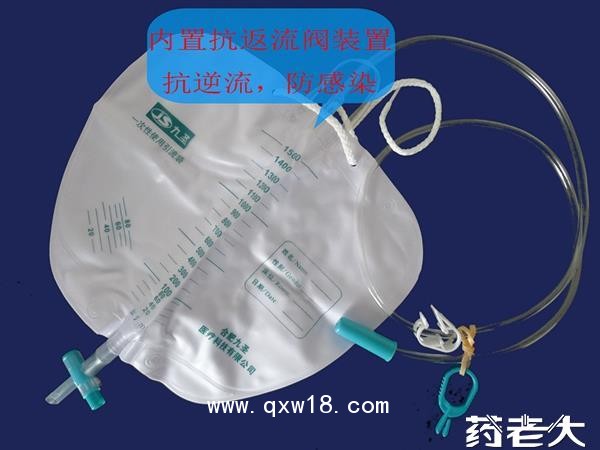 防逆流引流袋产品特点1:柔软、透气、吸水性好,摩擦时噪声小,佩戴时无过凉过热感觉2:放开、闭合操作简单,不会让手指沾染尿液3:内置抗返流阀装置,抗逆流,防感染4:独特设计的排放阀和悬挂设计,操作简单,使用方便5:进口优质PVC材料,质量稳定防爆裂6:超长110cm导管,密闭性好,携带方便。