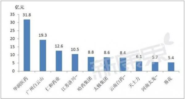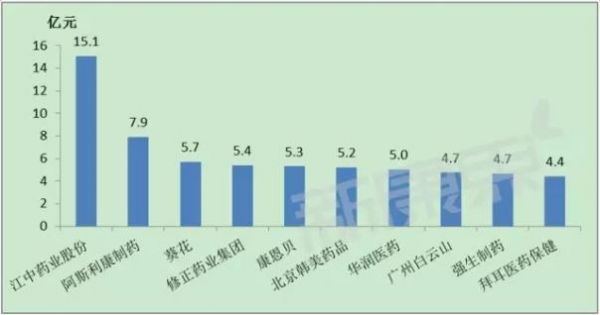 图2 2015年零售市场感冒药TOP10厂家销售额