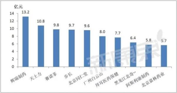图6 2015年零售市场补益养生类TOP10厂家销售额