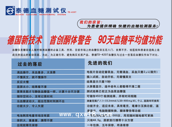泰德TD-4207血糖试纸利用电化学原理提供定量的血糖检测