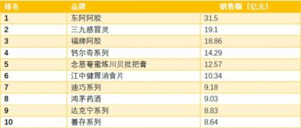 而销量好的家庭常用药,单个药品的年销量能够达到10亿以上,2014年销量最高的单个药品销售额是这样的